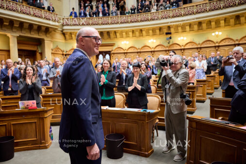 Bern 12.03.2025 - Martin Pfister, neugewählter Bundesrat der Mitte, waehrend den Bundesratswahlen in der vereinigten Bundesversammlung. © Yoshiko Kusano / LUNAX